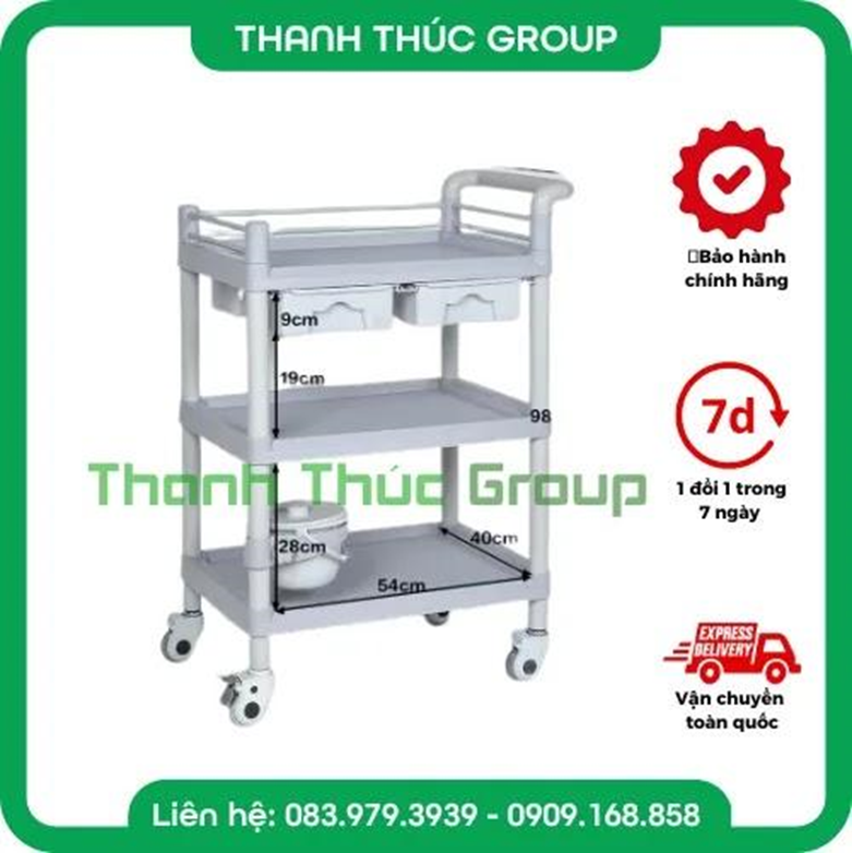 Xe Đẩy Tiêm Nhựa ABS 3 Tầng 2 Ngăn
